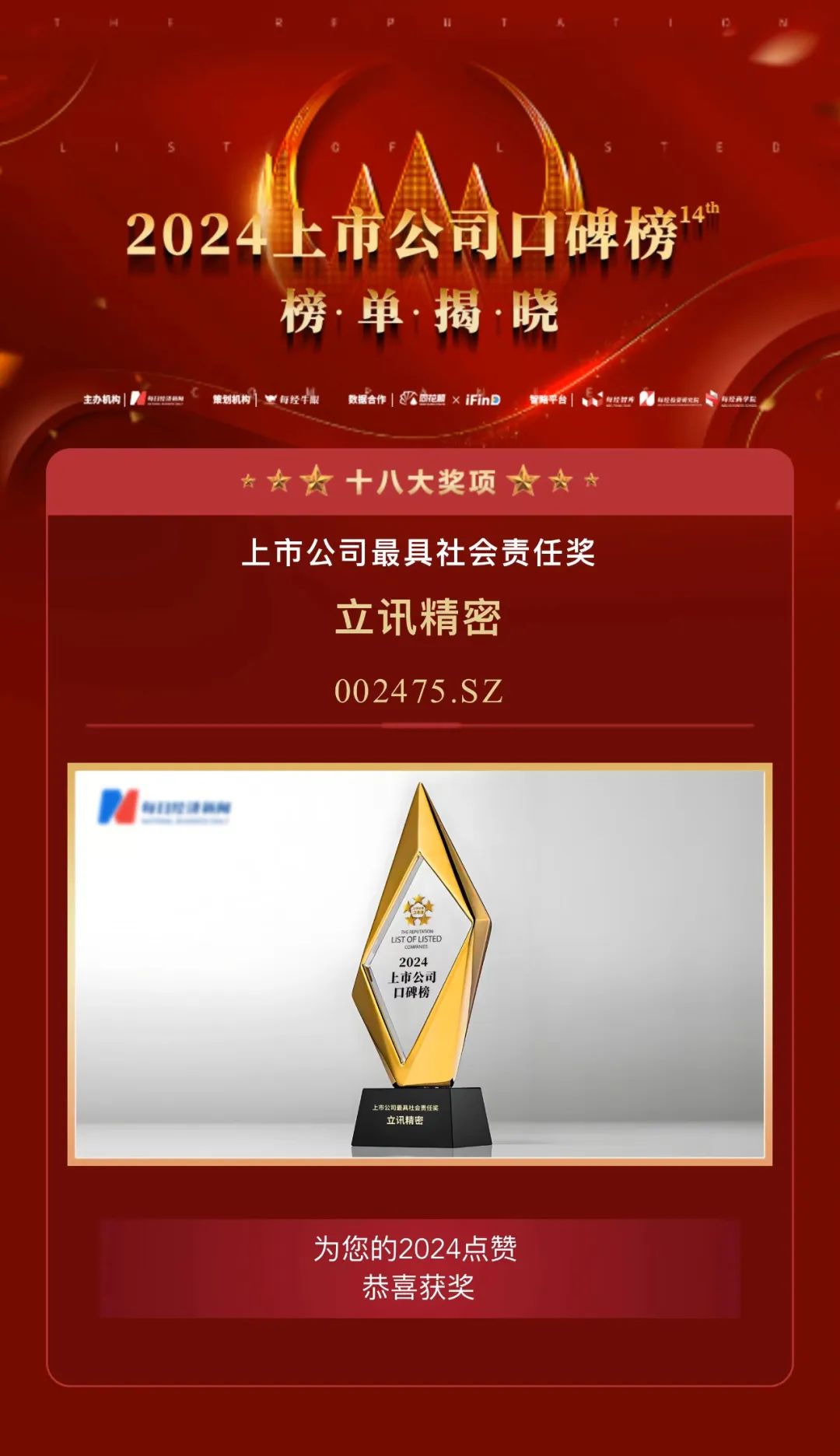 12月6日,每日经济新闻隆重揭榜“2024第十四届中国上市公司口碑榜”。BG大游精密成功入围榜单并获“上市公司20年非凡跨越奖”和“上市公司最具社会责任奖”两大权威奖项。