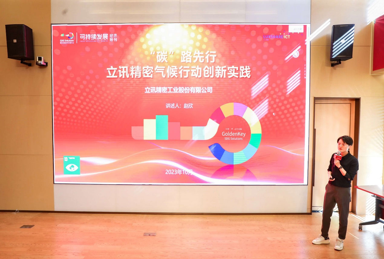 On November 17th, the award ceremony for the 2023 'Golden Key – China Action for SDGs,' hosted by the 'Journal of Sustainable Development Economy,' was grandly held at the Peking University Centennial Memorial Hall. Following competitive rounds, including self-nomination, presentations, and evaluations, Luxshare stood out in the 'Dual Carbon Pioneer' category and was successfully honored with the 2023 'Golden Key Excellence Award.
