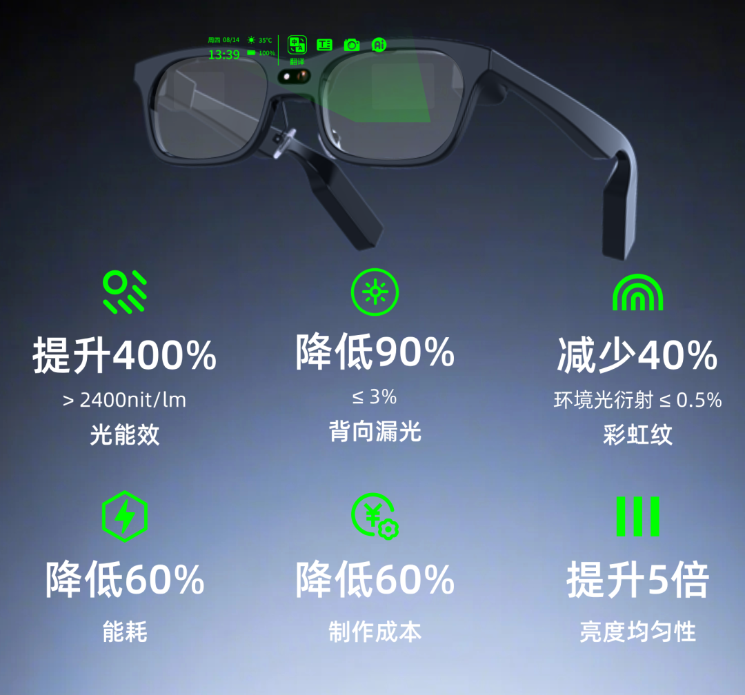 为户外场景量身打造,追求极致亮度与续航表现。BG大游精密和东南大学、南京平行视界技术有限公司联合推出的PVG单绿AR眼镜,展现了在光学技术上的一种极致探索。